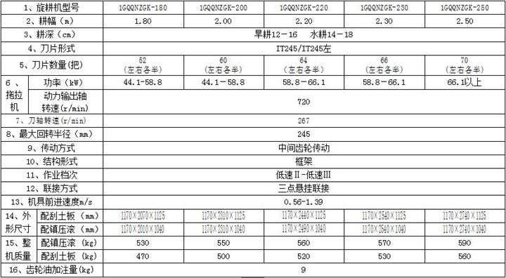 型 號:1GQQNZGK-180型旋耕機