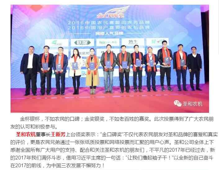圣和農(nóng)機(jī)--“金口碑獎(jiǎng)”中國用戶喜愛的農(nóng)機(jī)品牌