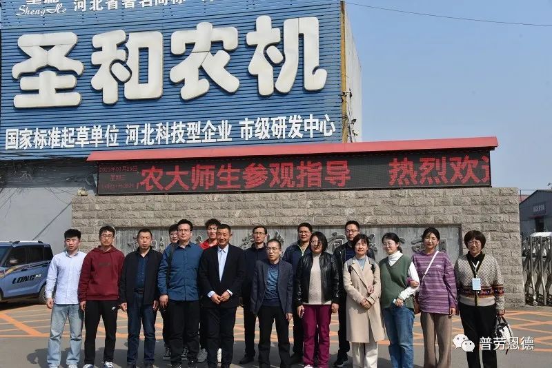 2023年3月29日,河北農大機電工程學院郝建軍副院長、趙樹鵬副院長,博導,教授,院系師生等一百三十多人到訪河北圣和農業(yè)機械有限公司參觀指導。