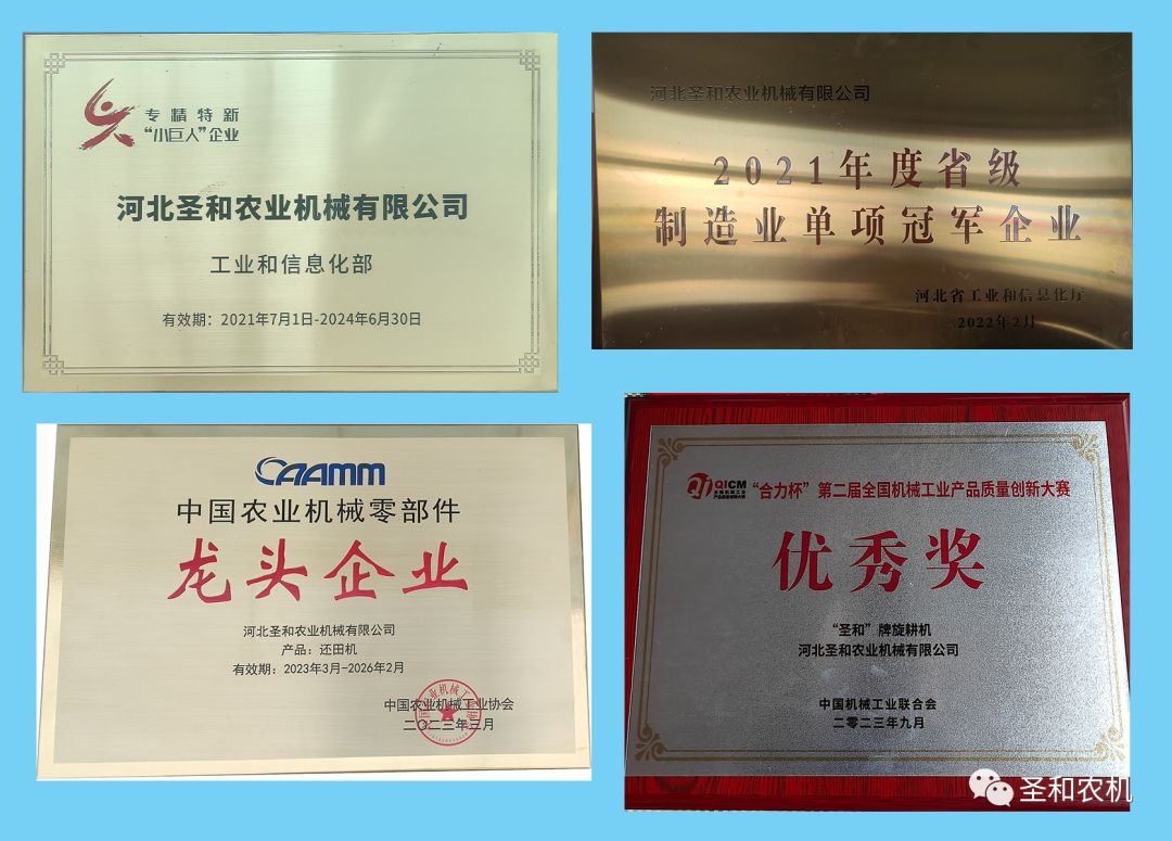 公司現(xiàn)為國家級(jí)專精特新“小巨人”企業(yè)、河北省“專精特新”示范企業(yè),省級(jí)制造業(yè)單項(xiàng)冠軍企業(yè),河北省首批縣域特色產(chǎn)業(yè)集群“領(lǐng)跑者”企業(yè)。公司擁有25項(xiàng)國家專利,參與制定多項(xiàng)國家標(biāo)準(zhǔn)。旗下?lián)碛?ldquo;圣和”、“普勞恩德”兩大品牌,產(chǎn)品遍布大江南北,行銷20多個(gè)國家和地區(qū)。其中旋耕機(jī)、還田機(jī)雙雙榮獲2022年度銷售冠軍,為中國耕整地機(jī)械行業(yè)的龍頭企業(yè)。
