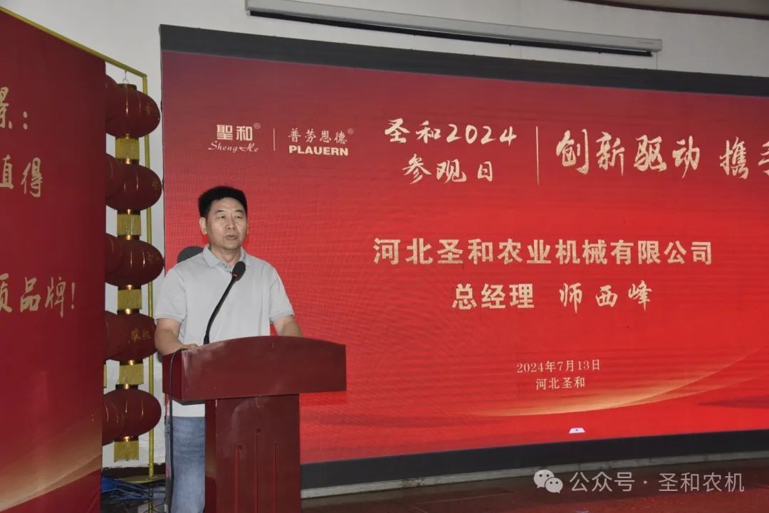 以“創(chuàng)新驅(qū)動,攜手共贏”為主題的“2024年公司參觀日”活動在2024年7月11日—13日,連續(xù)三天在河北圣和農(nóng)業(yè)機械有限公司盛大舉行。400余位來自南方省份的的經(jīng)銷商代表分兩期會師圣和,共襄盛舉。圣和公司歡聲笑語,盛事笙歌,一派節(jié)日喜慶景象。