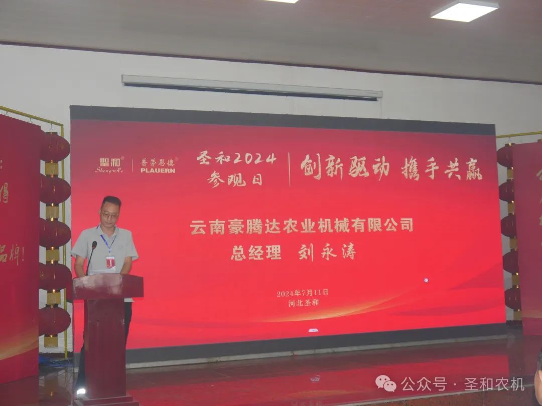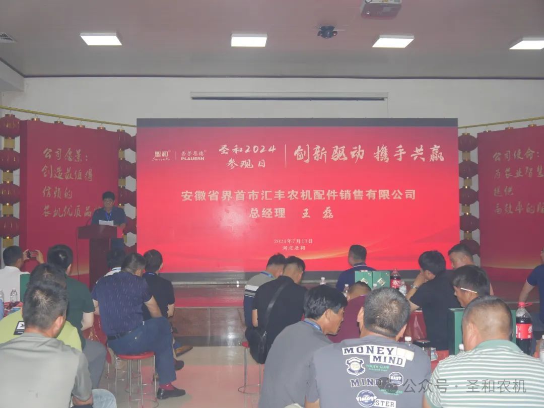云南豪騰達農(nóng)業(yè)機械有限公司劉永濤總經(jīng)理;進賢縣昌順農(nóng)業(yè)機械有限公司蔡洪春總經(jīng)理;合肥旭梓龍機械設(shè)備有限公司楊歡總經(jīng)理;安徽省界首市匯豐農(nóng)機配件銷售有限公司王磊總經(jīng)理等分別在不同期次的會議上作為經(jīng)銷商代表進行了發(fā)言。他們對圣和公司所取得的成就表示肯定,并向公司提出了寶貴的意見和建議。