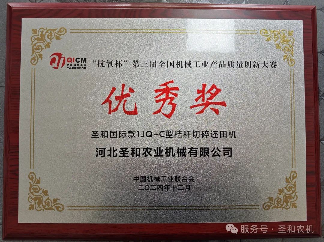 在2024年,“圣和牌還田機(jī)”又獲得質(zhì)量創(chuàng)新大賽優(yōu)秀獎(jiǎng)殊榮,再次證明了圣和公司在堅(jiān)持質(zhì)量第一、對(duì)標(biāo)國際先進(jìn)技術(shù)、以創(chuàng)新為第一動(dòng)力、促進(jìn)產(chǎn)業(yè)鏈供應(yīng)鏈質(zhì)量聯(lián)動(dòng)提升、助力傳統(tǒng)產(chǎn)業(yè)數(shù)智化方面的雄厚實(shí)力,為推動(dòng)農(nóng)業(yè)產(chǎn)業(yè)轉(zhuǎn)型升級(jí)和實(shí)現(xiàn)機(jī)械工業(yè)高質(zhì)量發(fā)展作出了突出貢獻(xiàn)。