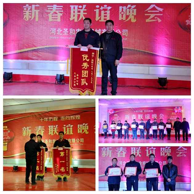 晚會在下午3點(diǎn)開始。首先播放了公司精心制作的公司宣傳視頻,回顧了公司的創(chuàng)業(yè)歷程和輝煌業(yè)績;隨后公司董事長王新芳、總經(jīng)理師西峰、副總經(jīng)理蘇山嶺一一發(fā)言,之后舉行了頒獎儀式,評選出了公司團(tuán)隊獎、個人優(yōu)秀獎、技能比賽獎、拔河比賽等一系列獎項;隨后以公司中高層精心準(zhǔn)備的《團(tuán)結(jié)就是力量》這首歌拉開了帷幕,團(tuán)結(jié)就是力量,這力量是鐵、這力量是鋼,比鐵還硬、比鋼還強(qiáng),展現(xiàn)出了圣和公司2016年打造團(tuán)隊建設(shè)的信心和決心。