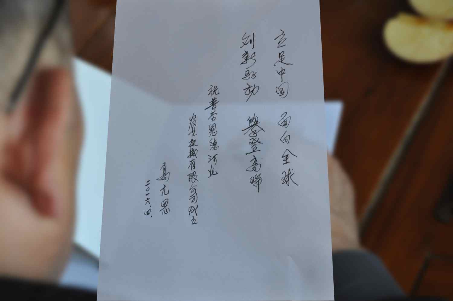 臨走時(shí),高會(huì)長(zhǎng)特意留字:立足中國(guó) 面向全球
