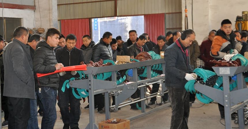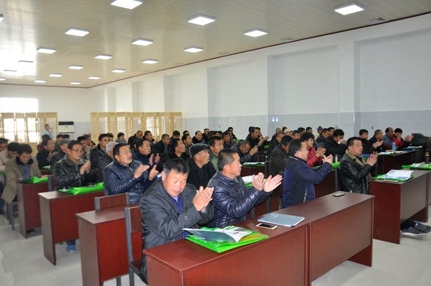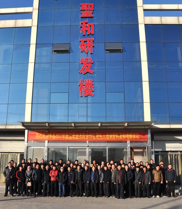 2017年12月16日上午,江蘇省豐縣2017年新型職業(yè)農(nóng)民合作社帶頭人培訓(xùn)營70余名學(xué)員,在豐縣農(nóng)機局市場辦蔣主任,豐縣農(nóng)機推廣站蔣站長,豐縣三農(nóng)公司負責(zé)人劉豐經(jīng)理帶領(lǐng)下,來到河北圣和農(nóng)業(yè)機械有限公司考察學(xué)習(xí)。圣和公司總經(jīng)理師西峰熱情接待了全體學(xué)員,并陪同參觀了公司生產(chǎn)工藝過程,營銷中心技術(shù)人員以“今天攜手合作 明天成就夢想”為題,作了專題技術(shù)講座。