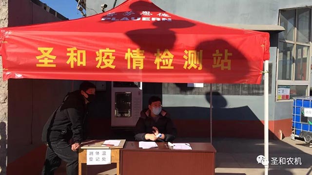 河北圣和農(nóng)業(yè)機(jī)械有限公司嚴(yán)格遵守各級(jí)政府的疫情防控安排,嚴(yán)格做好復(fù)工前的準(zhǔn)備工作。主要措施如下:1、成立疫情防控領(lǐng)導(dǎo)小組,逐級(jí)建立防疫工作組,層層防控。2、通過網(wǎng)絡(luò)、宣傳版與電子大屏播放等多種手段,宣傳貫徹防疫制度與防疫知識(shí),加強(qiáng)員工的監(jiān)督與管理。3、在公司門口建立二十四小時(shí)值班的疫情防控點(diǎn)、應(yīng)急隔離室、嚴(yán)格限制外來人員與車輛進(jìn)入廠區(qū),建立職工每日排查制度。4、統(tǒng)計(jì)與購買防疫物資:口罩、防護(hù)眼鏡、橡膠手套、消毒酒精、洗手液等,每個(gè)車間配備廢棄口罩收集桶、消毒酒精、洗手液等個(gè)人防護(hù)用品。5、每天對(duì)全廠區(qū)、全覆蓋進(jìn)行消毒殺菌。6、建立健全防疫規(guī)程和制度。制定了完備的錯(cuò)時(shí)上下班、每天的體溫監(jiān)測、分散就餐制度等,減少人員聚集,加強(qiáng)室內(nèi)通風(fēng)。7、建立針對(duì)員工發(fā)燒、乏力、干咳、呼吸困難等癥狀的應(yīng)急預(yù)案,隔離措施與應(yīng)急交通送醫(yī)路線、定點(diǎn)醫(yī)院聯(lián)系等預(yù)案。