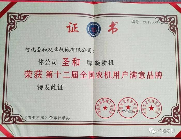 四、全國農機用戶滿意品牌——圣和再獲大獎!