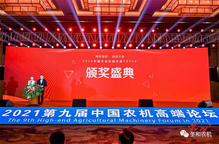 河北圣和農業(yè)機械有限公司榮獲2020中國農業(yè)機械年度TOP50+最具影響力自主品牌“金禾獎”,河北圣和農業(yè)機械有限公司營銷管理中心總經理郭廣彥上臺領獎。