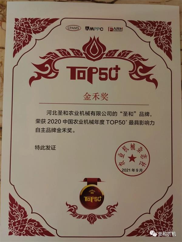 金禾獎獲獎品牌是頒發(fā)給快速成長、健康發(fā)展的自主品牌,圣和農機近年來專注細分市場,以創(chuàng)新為驅動力,力求為廣大用戶提供靠譜的農機具,讓客戶買的放心,用的稱心。評選獲獎是大家對圣和的肯定與支持,我們將更加努力,創(chuàng)造更優(yōu)質的產品與服務。