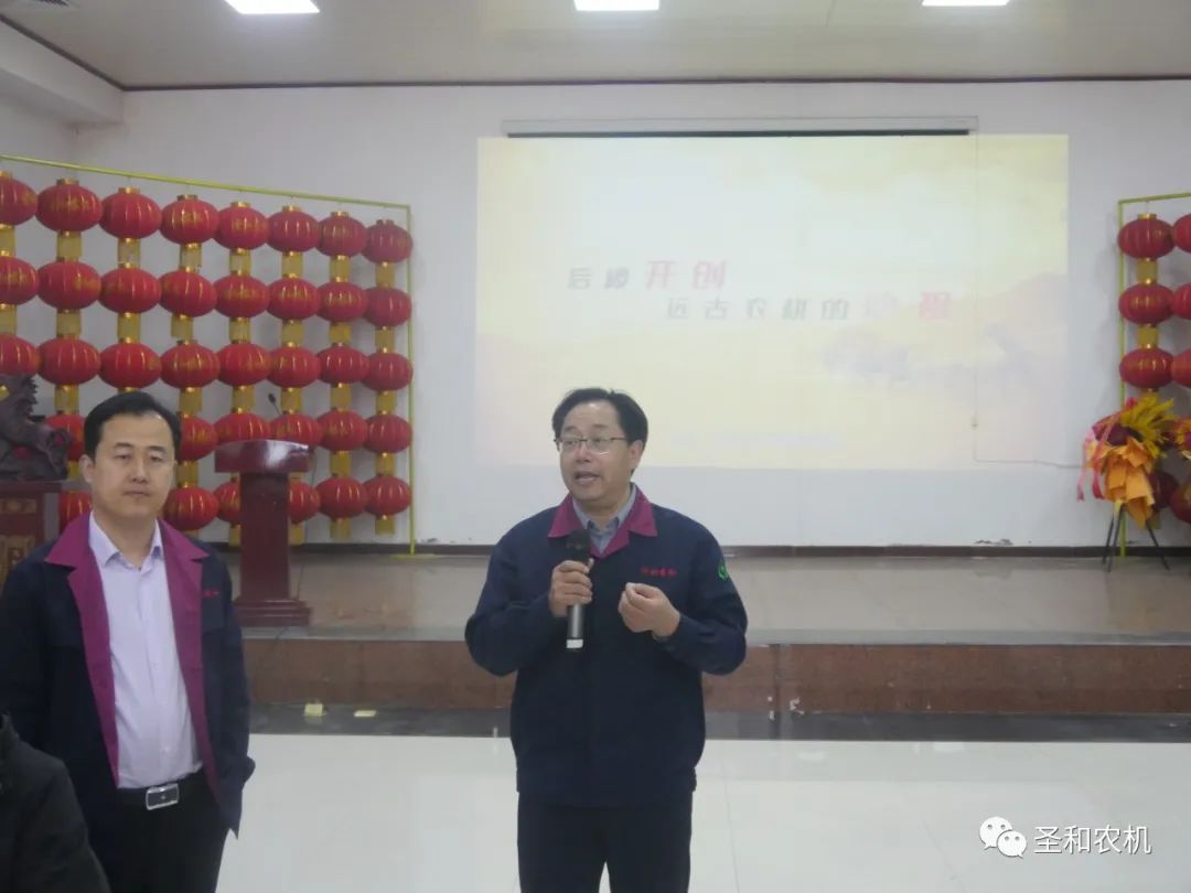 參觀結(jié)束后,營(yíng)銷管理中心總經(jīng)理郭廣彥發(fā)表致詞,對(duì)大家的到來表示歡迎,圣和的發(fā)展離不開廣大客戶的支持,圣和將為大家生產(chǎn)優(yōu)質(zhì)農(nóng)機(jī),做好品牌,與大家合作共贏。