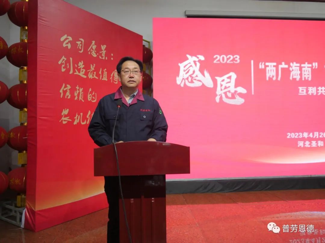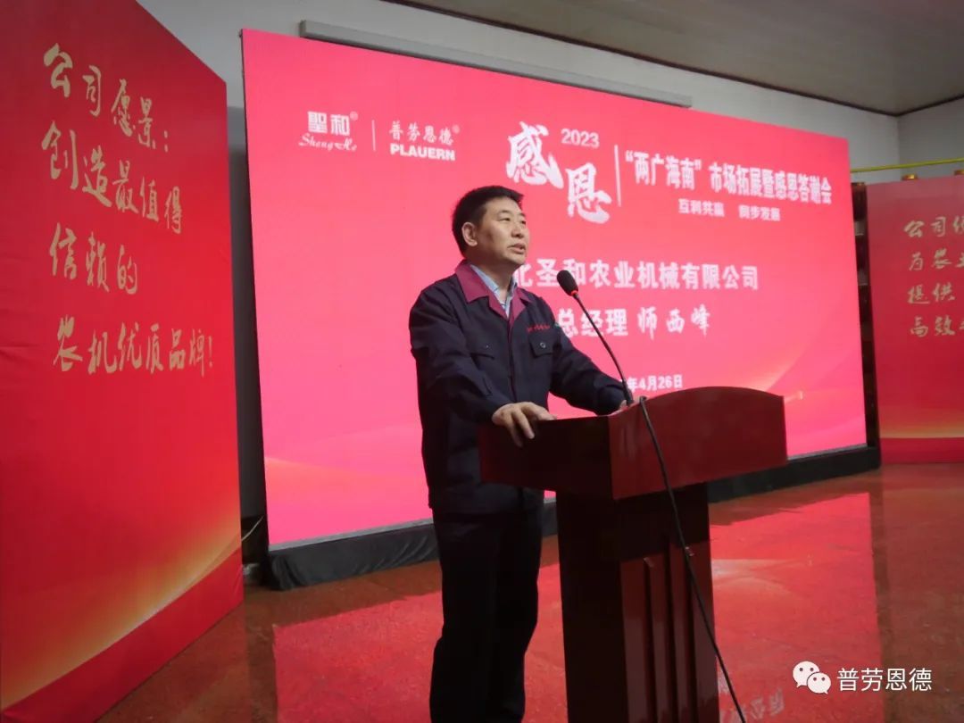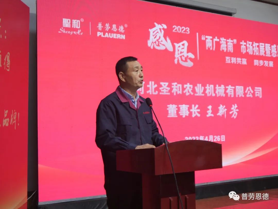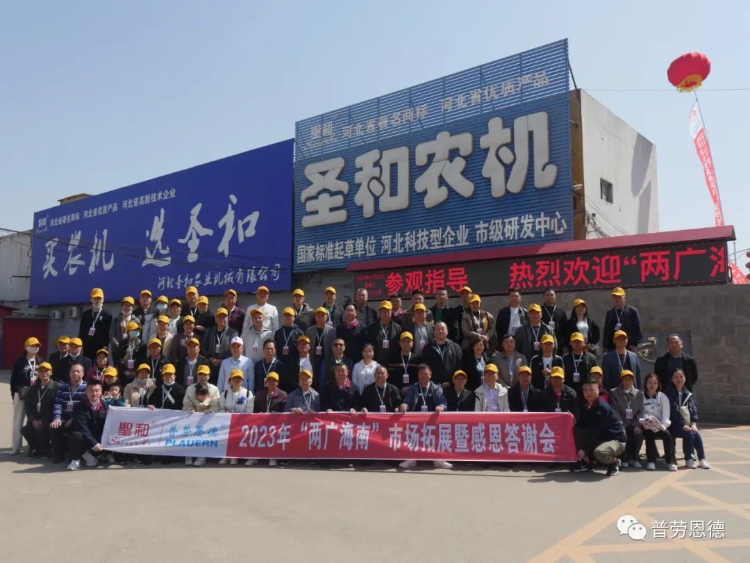 2023年4月26日,圣和公司歡聲笑語(yǔ),春意盎然。以“互利共贏,同步發(fā)展”為主題的河北圣和“2023年兩廣海南市場(chǎng)拓展暨感恩答謝會(huì)”在河北圣和農(nóng)業(yè)機(jī)械有限公司盛大舉行。100余位來(lái)自廣東、廣西、海南的經(jīng)銷商會(huì)師圣和,共襄盛舉。