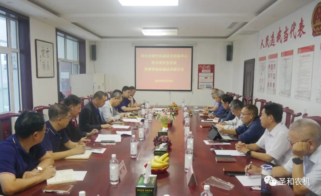 2023年9月24日,河北省耕作機械技術(shù)創(chuàng)新中心技術(shù)指導(dǎo)委員會會議暨耕整地機械技術(shù)研討會在河北圣和農(nóng)業(yè)機械有限公司召開。河北省耕作機械技術(shù)創(chuàng)新中心管理委員會主任、河北圣和農(nóng)業(yè)機械有限公司董事長王新芳,河北省耕作機械技術(shù)創(chuàng)新中心管理委員會副主任、河北圣和農(nóng)業(yè)機械有限公司總經(jīng)理師西峰,河北省耕作機械技術(shù)創(chuàng)新中心管理委員會副主任、河北省農(nóng)業(yè)機械化研究所所長范國昌,河北省耕作機械技術(shù)創(chuàng)新中心技術(shù)指導(dǎo)委員會主任、河北省農(nóng)林科學(xué)院糧油作物研究所研究員籍俊杰,河北省耕作機械技術(shù)創(chuàng)新中心技術(shù)指導(dǎo)委員會副主任、河北農(nóng)業(yè)大學(xué)機電工程學(xué)院副院長、教授、博士生導(dǎo)師郝建軍,河北省耕作機械技術(shù)創(chuàng)新中心技術(shù)指導(dǎo)委員會副主任、河北圣和農(nóng)業(yè)機械有限公司首席農(nóng)機農(nóng)藝專家張培增,河北省耕作機械技術(shù)創(chuàng)新中心技術(shù)指導(dǎo)委員會委員、河北省農(nóng)業(yè)機械化研究所原所長、研究員王進朝,河北省耕作機械技術(shù)創(chuàng)新中心技術(shù)指導(dǎo)委員會委員、河北省農(nóng)業(yè)機械行業(yè)協(xié)會會長、研究員劉鋒,河北省耕作機械技術(shù)創(chuàng)新中心技術(shù)指導(dǎo)委員會委員、河北省農(nóng)業(yè)機械技術(shù)推廣總站原站長、研究員李少波,河北省耕作機械技術(shù)創(chuàng)新中心技術(shù)指導(dǎo)委員會委員、河北省農(nóng)業(yè)機械行業(yè)協(xié)會秘書長,研究員王家騵等農(nóng)業(yè)機械領(lǐng)域的專家、企業(yè)家和工程技術(shù)人員30余人出席。